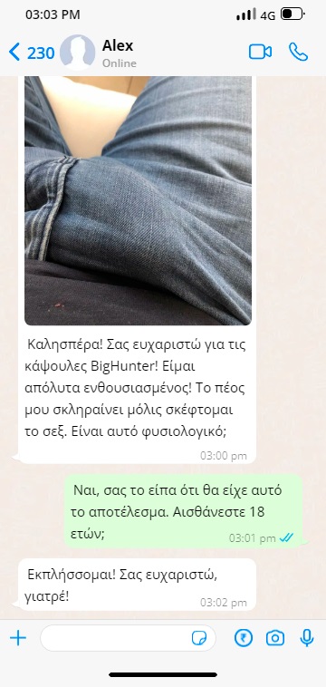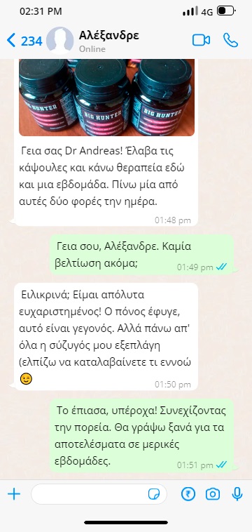 Άρχισα να παίρνω το BigHunterόταν ήταν προγραμματισμένη η χειρουργική επέμβαση. Δούλεψε! Από τότε που πήρα τις κάψουλες, το πέος μου έχει γίνει πιο αισθητικά ευχάριστο και εντυπωσιακό, λειτουργεί σαν ρολόι. Κάνω σεξ 4 φορές την εβδομάδα. Είμαι ευγνώμων στον Δρ Ανδρέα!